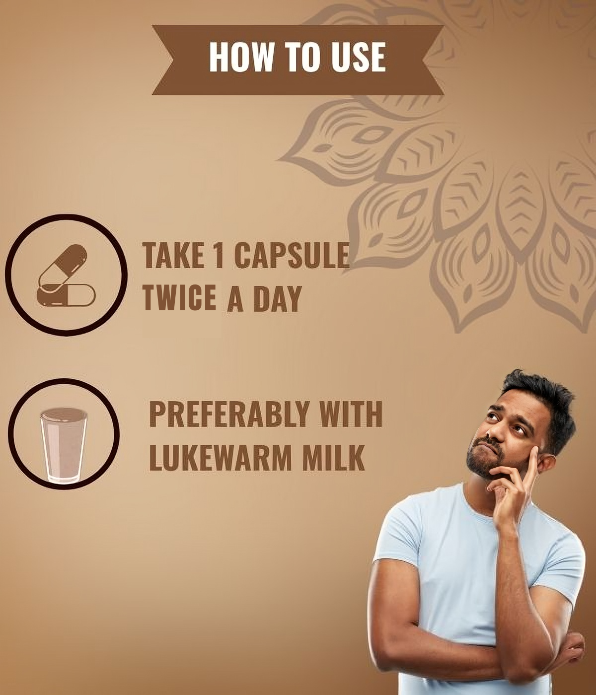 Enhances Vigor and Vitality – Shilajeet in these capsules promotes vigour and overall stamina, besides increasing male sexual endurance with its sex stamina booster properties. Consumption of these capsules makes you feel energetic and escape lethargy.