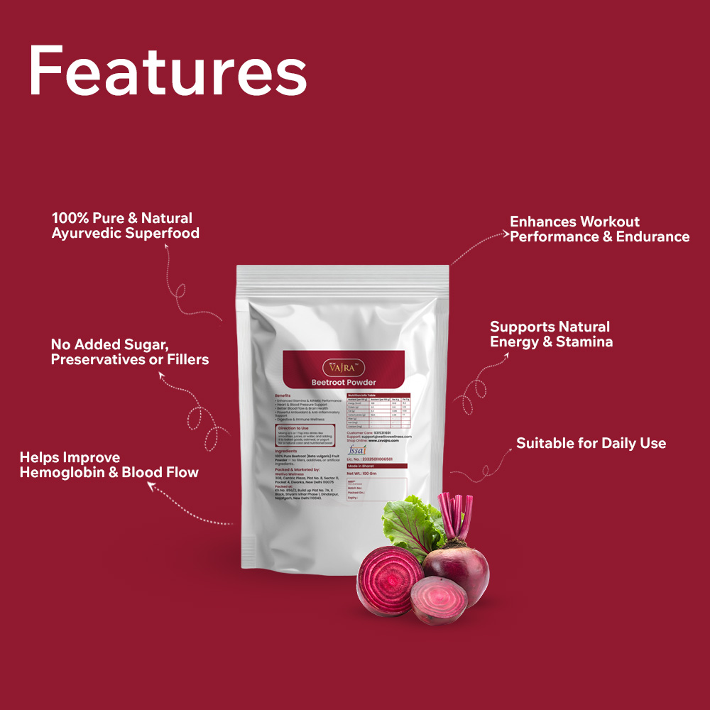 ZX Vajra Beetroot Powder is a natural plant-based supplement made from carefully processed beetroot to support daily energy, stamina, and endurance. Rich in essential nutrients and naturally occurring nitrates, this powder helps promote blood flow, physical performance, and overall vitality when used regularly.