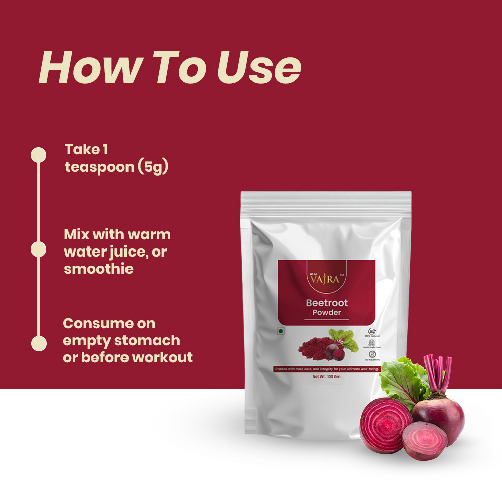 | Ingredients | Pure beetroot powder for daily nutrition |