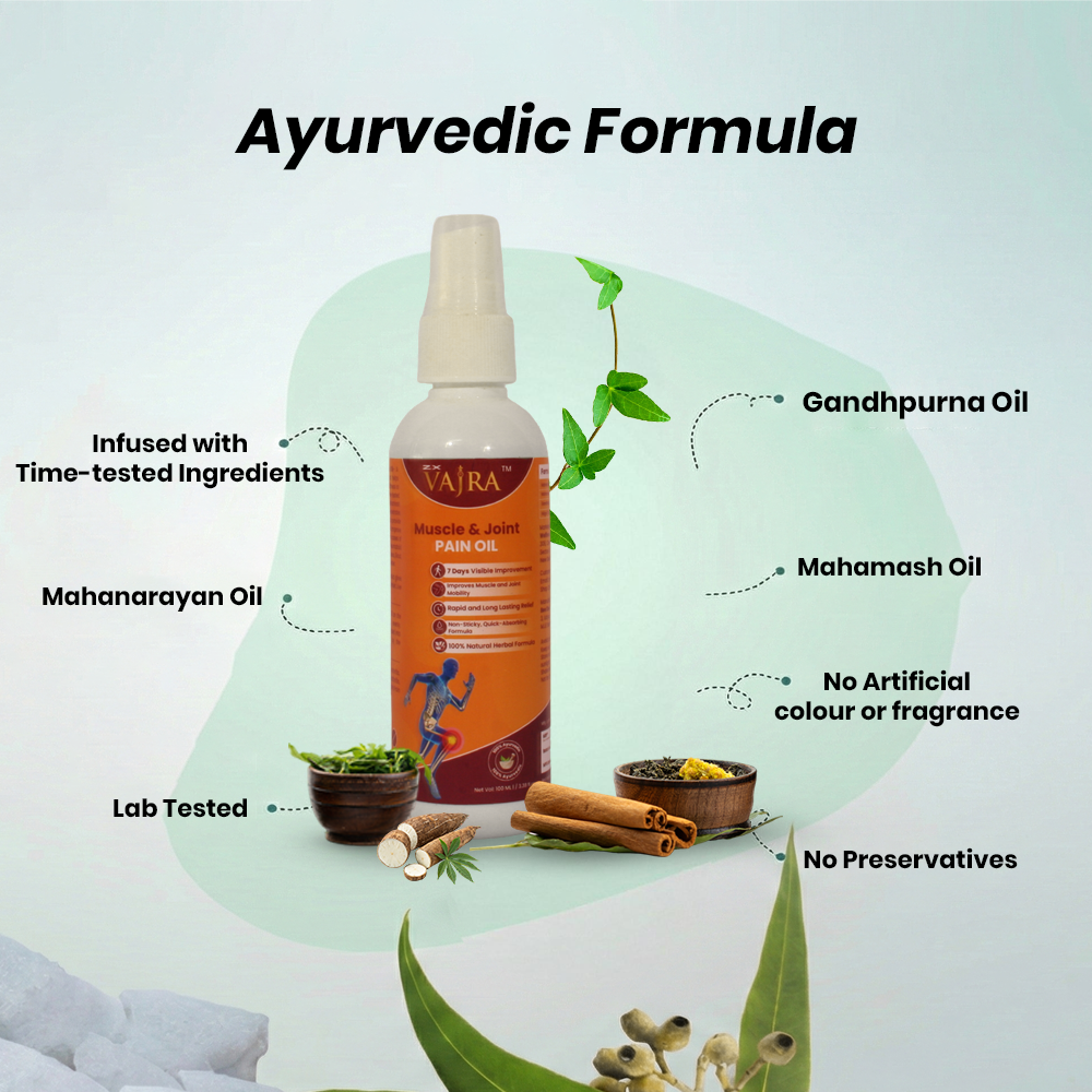 | Ingredients | Made with Mahanarayan Oil, Mahamash Oil, Gandhpurna Oil, Nilgiri Oil |