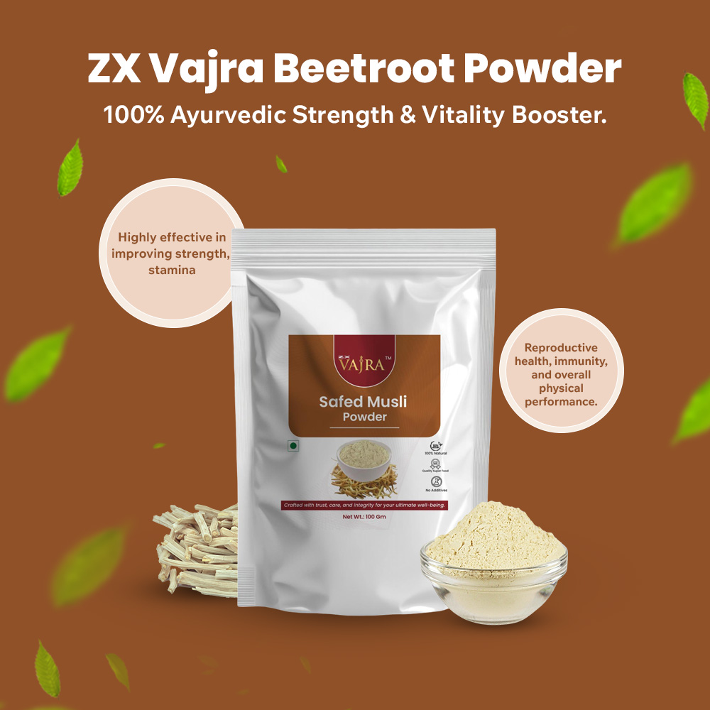 Physical weakness, low stamina, and declining vitality are common outcomes of stress, poor nutrition, and demanding lifestyles. ZX Vajra Safed Musli Powder is a traditional Ayurvedic formulation made from high-quality Safed Musli roots, long valued for their rejuvenating and strength-supporting properties.